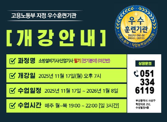 ★ [소방설비기사/산업기사][전기필기과정][11월17일(월)(야간반)] 개강 ★