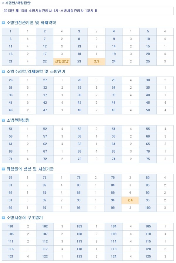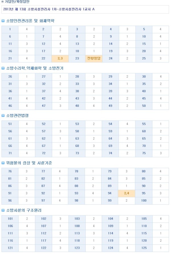 자격증 기출문제 [소방시설관리사] 제13회 소방시설관리사 1차 필기시험 문제 및 정답