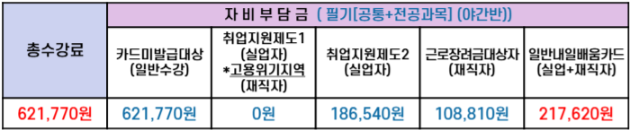 ※ 공통과목 수업은 평일 야간(19:00~22:00)에 진행됩니다.
